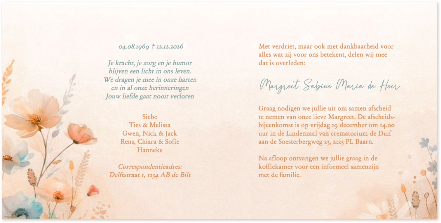 Subtle hand-drawn elements and floral details — thoughtful designs to bring comfort in times of loss.